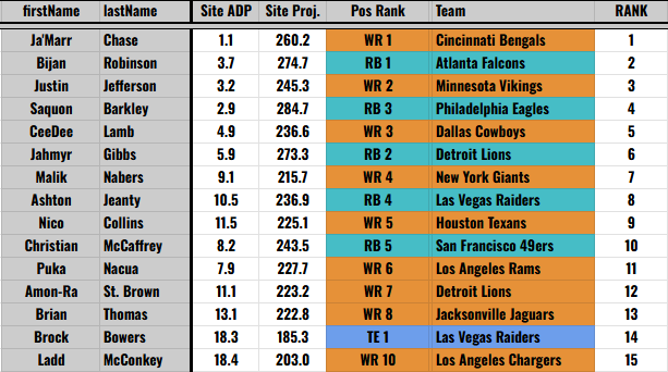 🗃️PRESEASON: Color-coded, downloadable Underdog Best Ball Ranks (.csv)